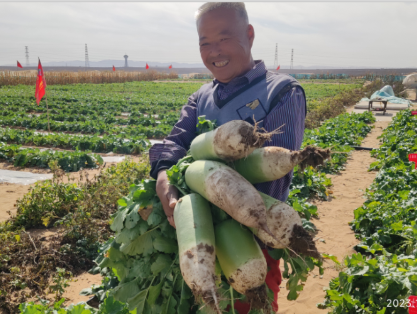 在腾格里沙漠的种植基地,郑赛修护采用了保水减渗层,确保农作物有足够的水 “喝”,同时对上层土壤进行改良,最终使沙土成为可以种植各种农作物的有机土地。