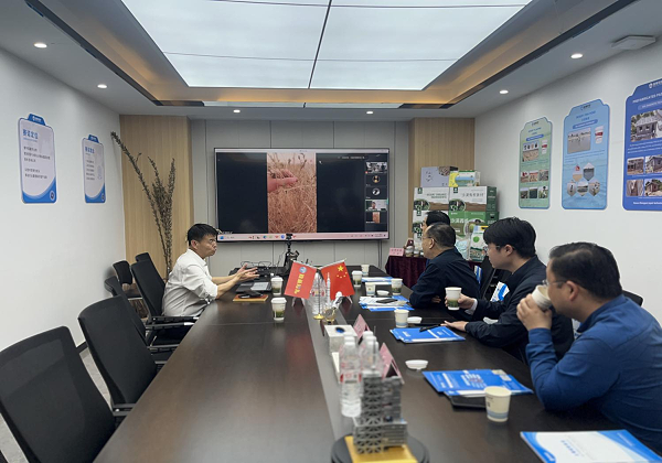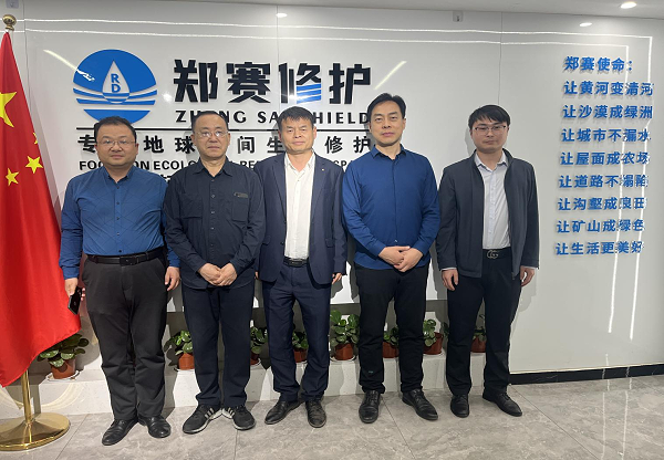 考察伊始,王福州董事长向各位领导详细介绍了郑赛的核心技术理念——“冗余·韧性·生态·可持续”。这一创新理念贯穿于郑赛修护各项业务之中,展现了公司在生态修护领域的前瞻性与责任感。随后,双方于会议室开展技术交流,围绕核心技术、应用成果等展开深入探讨,期间,通过连线郑赛地球空间生态修护示范基地,实时展示了独特的沙漠治理技术成果,生动直观地呈现出郑赛技术在改善生态环境方面的显著成效,令在场领导们眼前一亮。