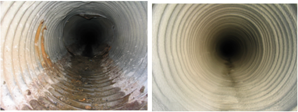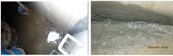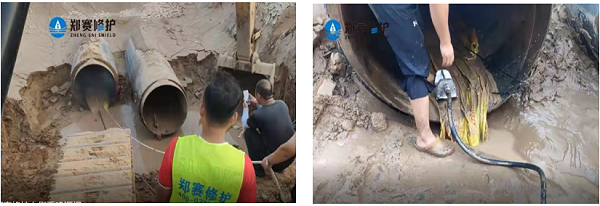 沿管线切割开孔,用潜望镜进入检测,用专用双向拉泥桶拉泥,基本清完后,用专用清洗装置清洗残余的淤泥。