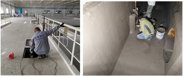 所用材料以YYA特种防水抗渗浆料为主,在使用时只需加入清水,按照适当的比例混合均匀,搅拌若干分钟后便可施工使用。环境友好性较高,且成本低廉;能有效修复渗漏、腐蚀等问题,修复的持久性效果较好。