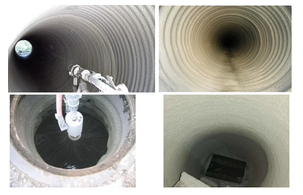 离心喷涂修复技术是使用高速旋喷器产生的离心力将调配好的内衬浆料均匀、连续的浇筑到待修复检查井、管道内壁,同时通过机器人安装携带旋喷器在管内往复移动,从而在管壁形成厚度均匀连续的内衬。离心喷涂工艺可实现完全自动化,操作相对简单;全自动离心浇筑,无需人员进入,不受井深影响,安全高效。